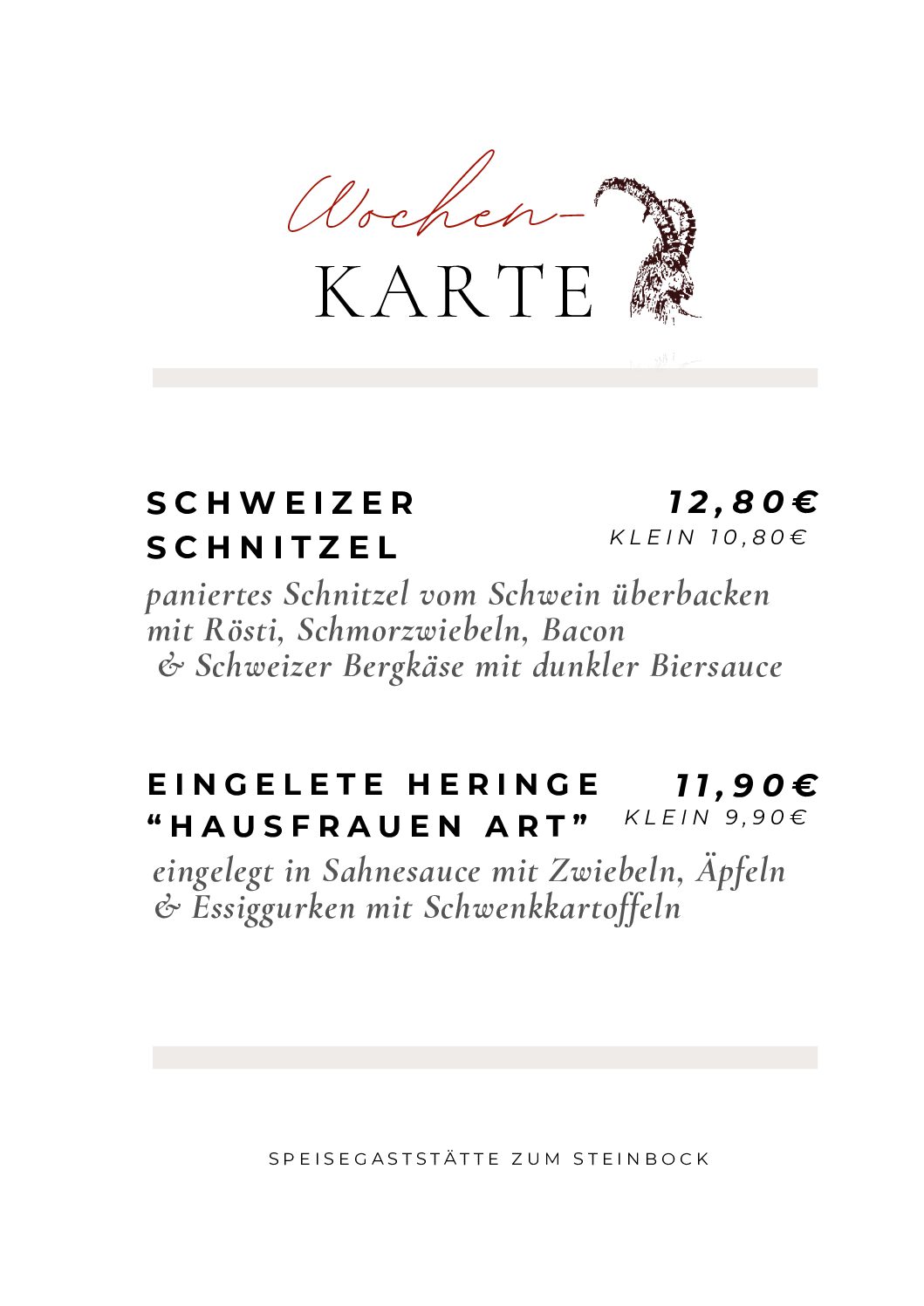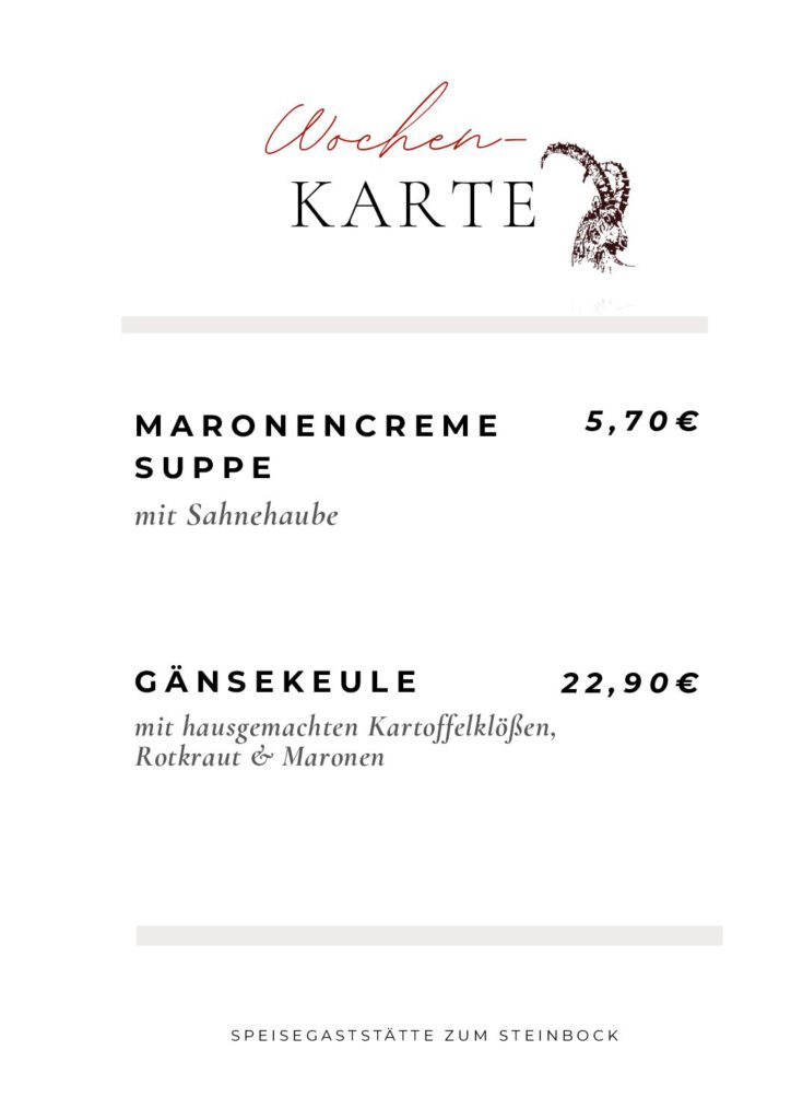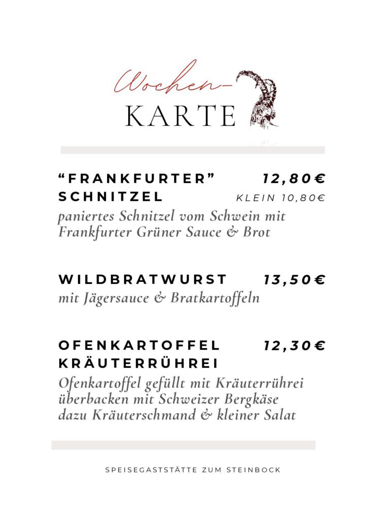 Herzlich Willkommen in der Speisegaststätte ‚Zum Steinbock‘.